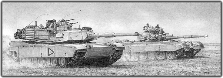 A U.S. Army M1A1 Abrams and a Yugoslav-built T84 of the Kuwaiti Army, participating in joint exercises in Kuwait. |