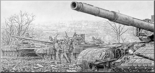 December 1994: Russian army tank crews and their T 72s gathered outside the Chechen city of Grozny. |