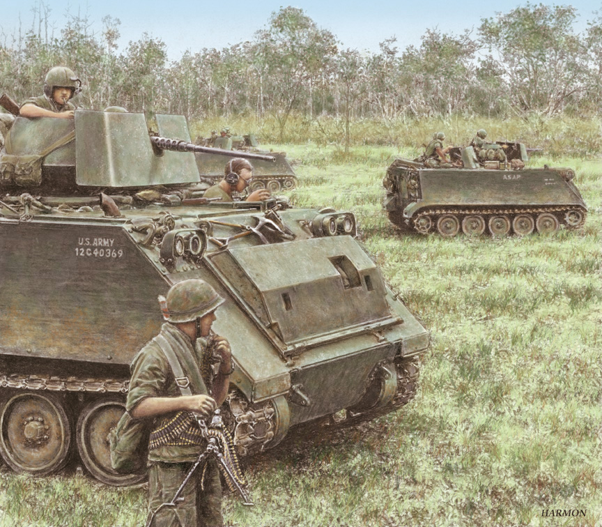 Vietnam, 1968: M113 armored personnel carriers and troopers of the 11th Armored Cavalry Regiment.