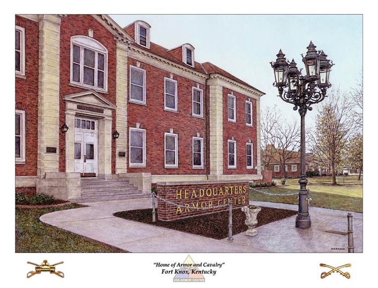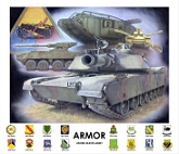 ARMOR REGIMENTAL PRINT The Armor Regimental Print is a great tribute to the past, present and future of the U.S. Army Armor branch. It features the M1A2 Abrams main battle tank and the new "Stryker" armored gun system. In the background are the Armor branch insignias, and the grandfather of all armored vehicles, the Mark IV tank of World War I.