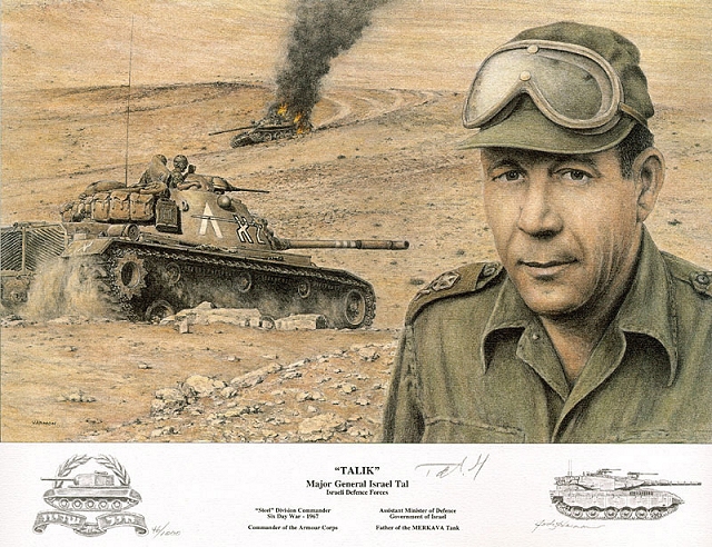"TALIK" - Major General Israel Tal "Israeli Steel" Division Commander during the Six Day War in 1967. Later served as the Commander of the Israeli Armor corps, the assistant minister of defense, and was instrumental in the design and known as the "father" of the Merkava family of main battle tanks. He was also influential in the design of the U.S. M1 Abrams tank.